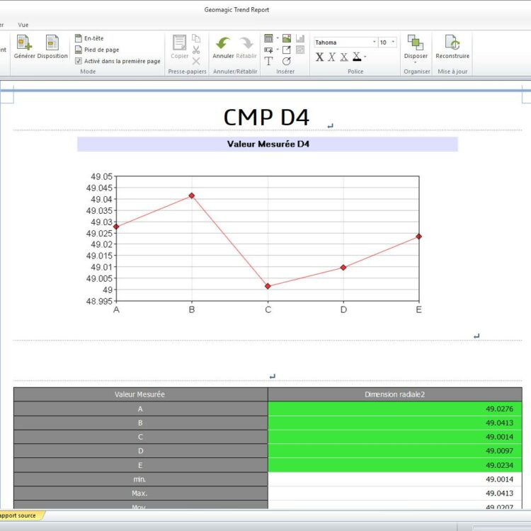 - L’exploitation des données pour réaliser les vérifications requises : comparaison CAO/pièce réelle, cotation 2D/3D, tolérancement ISO-GPS, cartographie de déviation ou suivi statistique